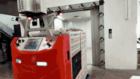 Solution Highlight 2: Multi-Model High-Efficiency Collaboration Tugger AGVs and stacker AGVs work together to automate finished goods inbound and outbound processes. Under the EFMS dispatch system, multiple vehicles coordinate efficiently: tugger AGVs move finished products from the offline station to the third-floor staging area via elevator, while stacker AGVs transport goods from staging to storage racks in the finished-goods warehouse.